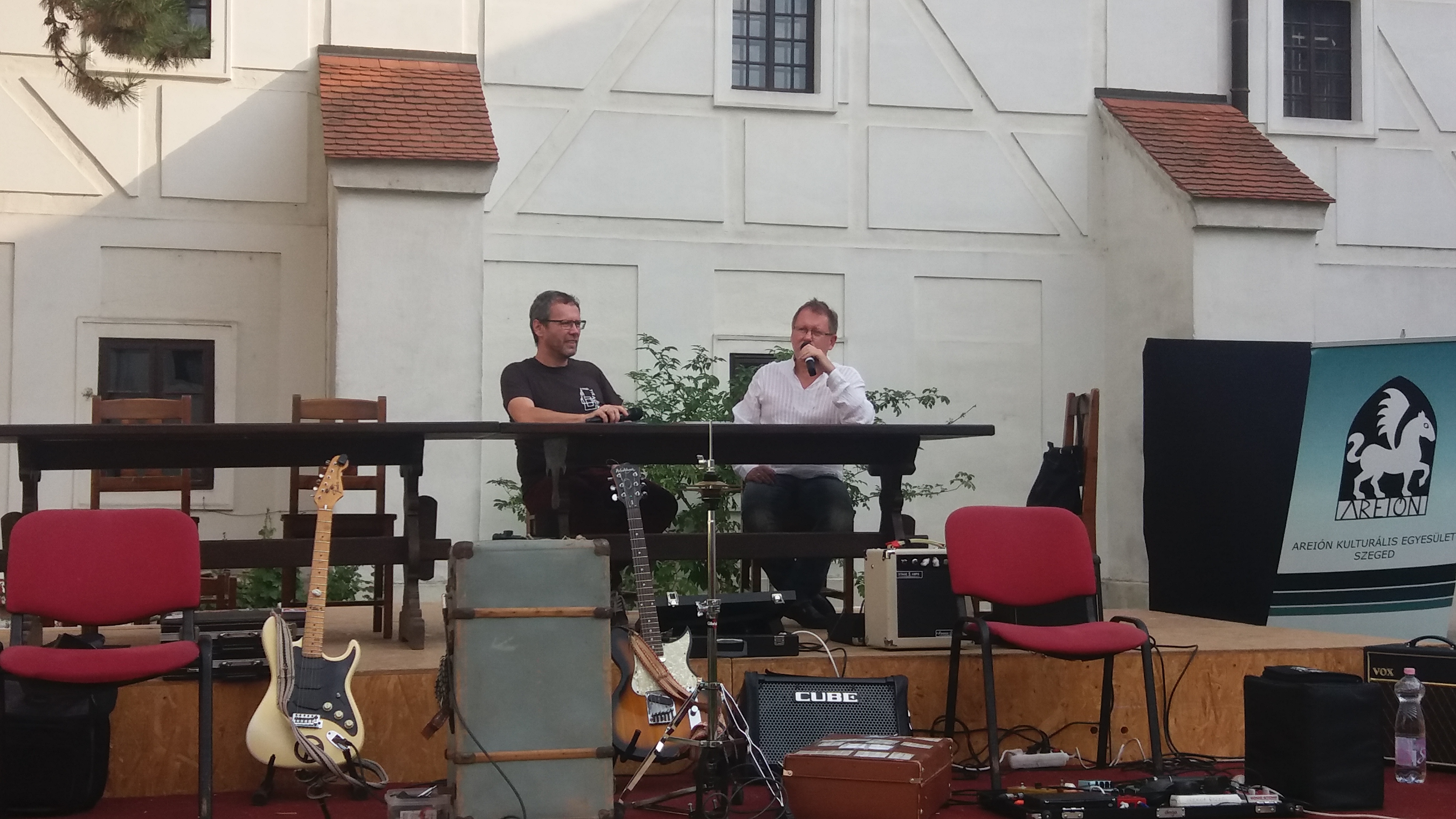 Számos program mellett Vörös István is bemutatta Lackfi Jánossal közösen írt legújabb kötetét az alsóvárosi ferences kolostor udvarán.