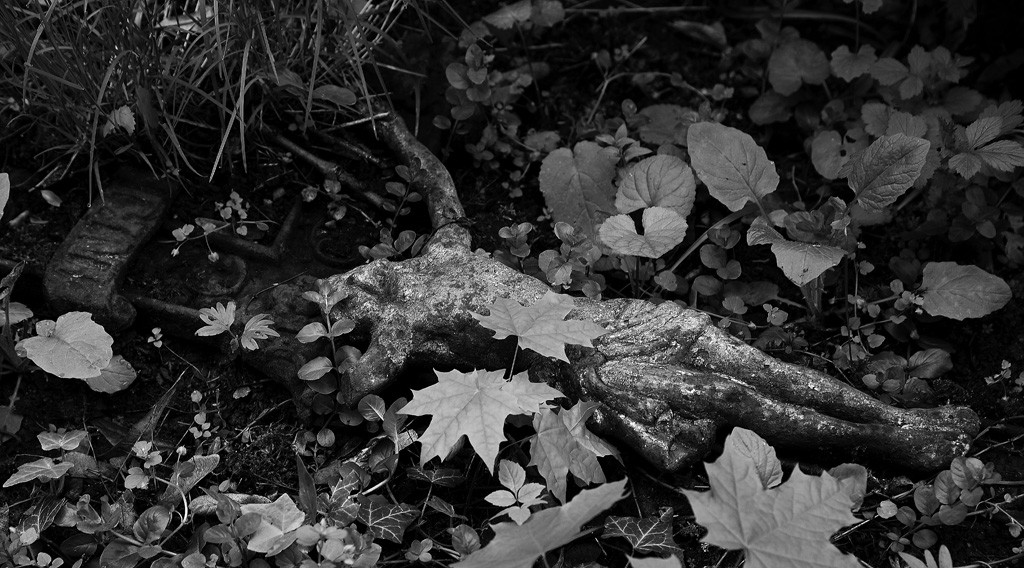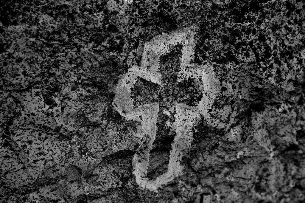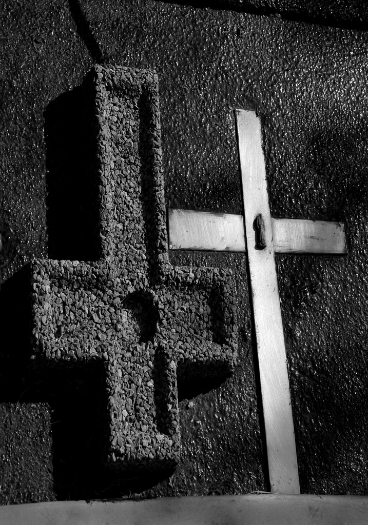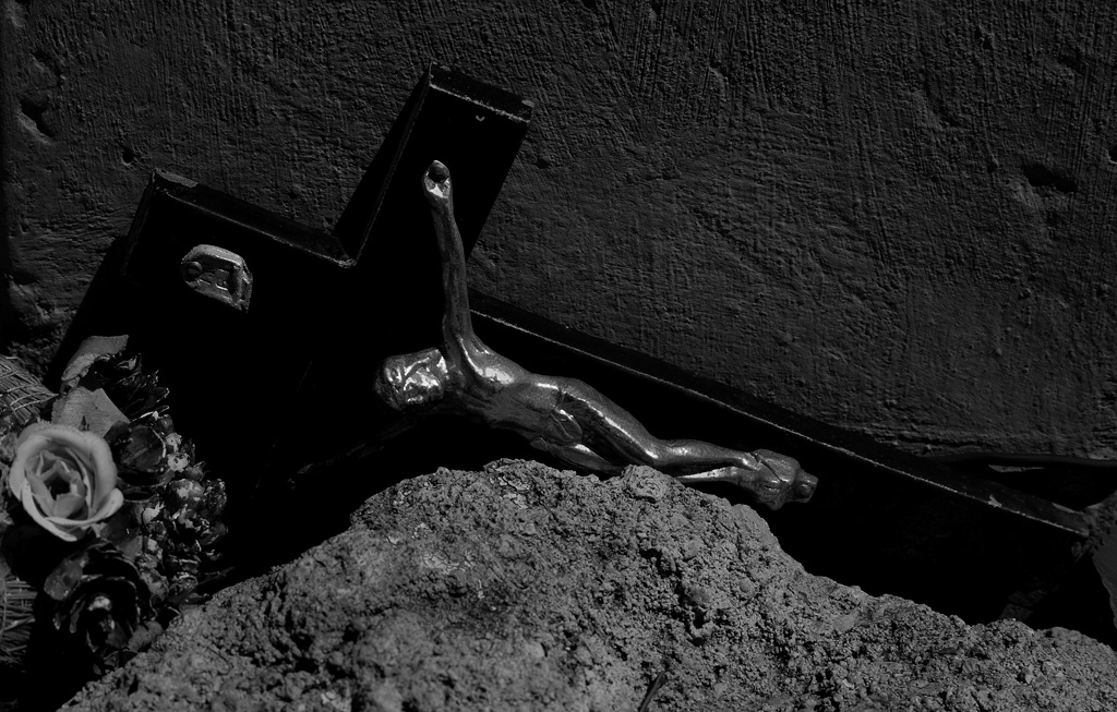 Felvetődik a kérdés: van-e időnk elidőzni a keresztek társaságában? Dömötör Mihályt, a fotográfust és a filozófia iránt élénken érdeklődő teoretikus alkatú egyént mindig is érdekelte az idő. A valóság folytonos változékonyságát az expozíció pillanatával, az expozíció mostjával képként rögzíti. A statikus képre is hat az idő, de nemcsak Krisztus szenvedésének folyamatai idéződnek fel a befogadóban, hanem a tárgyiasult keresztek képe, melyek erodálódási folyamatait is rögzíti az alkotó. Rozsdafoltoknak, lepattogzott festékrétegeknek ugyanúgy szemlélőivé válunk, mint a bejárathoz közeli főfal központi képének, a törött arcú kerámia Krisztus végstádiumbeli állapotának, melyet a nyékvárkonyi sírkert egyik sarkában, a fűben talált Dömötör Mihály.