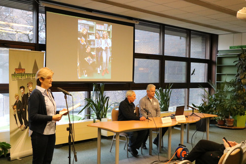 »Kézitáskája, mint minden nőnek, neki is tele van mindenféle limlommal, de a feje sem üres. Esetei mindig csattanóval végződnek, gyakran pofonnal, egy-egy léha férfi arcán. Nem vallásos, de sokat áldoz az oltárra. A divat oltárára… Fess, de nem festett. Derék lány, bár a dereka olyan keskeny, hogy alig látszik. Szeme kacag, többször szikrákat szór és bár két ilyen szép szeme nincs senkinek, gyakran mégis azt mondják rá, hogy szemtelen. Jucika mindig kedves, mindig igazságos és sohasem olyan, mint néha a kenyér a Közértben: ő mindig mai… Büszke lehet rá a papája: Pusztai Pál«” – idézte meg szeretett képregényhősét köszöntőjében a Somogyi-könyvtár igazgatója, Sikaláné Sánta Ildikó.