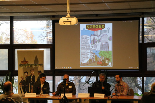 A 14. Szegedi Képregényfesztivál díszvendége a világhírű szerb képregényalkotó, Aleksandar Zograf volt, aki eredetileg újságírónak készült, már 17 éves korában jelentek meg cikkei az országos sajtóban. Ezzel párhuzamosan rajzolni is kezdett, és hamarosan felismerte, hogy az általa elképzelt rövid történetek képregényként működnek a legjobban. Az 1990-es évektől kezdve munkái helyet kaptak amerikai és kanadai antológiákban és számos európai magazinban. Határtalan érdeklődésének köszönhetően a legkülönbözőbb témákkal foglalkozik műveiben, amelyek elkészítéséhez dokumentarista igényességgel folytat kutatásokat. Számos alkalommal járt Magyarországon is, ahová mindig szívesen tér vissza. Két önálló kötete jelent meg eddig nálunk, a Pszichonauta: látomások a Balkánról 2006-ban és Elhasznált világ 2010-ben, valamint több rövid képregénye is magazinokban antológiákban. Most először látogatott el a szegedi képregényfesztiválra, és ebből az alkalomból egy újabb képregényfüzete is megjelent TV-függők, TV-álmok címen. A Szeged folyóirat novemberi lapszámában egy kétoldalas képes története jelent meg Szegedről, magyar nyelven elsőként nyomtatásban. Bayer Antal a Magyar Képregénykiadók Szövetségének első elnöke, valamint Szabó Zoltán Ádám kérdezte az alkotót pályafutásáról, a közönség pedig Lepahin Péter szinkrontolmácsolásában hallgathatta meg a beszélgetést.