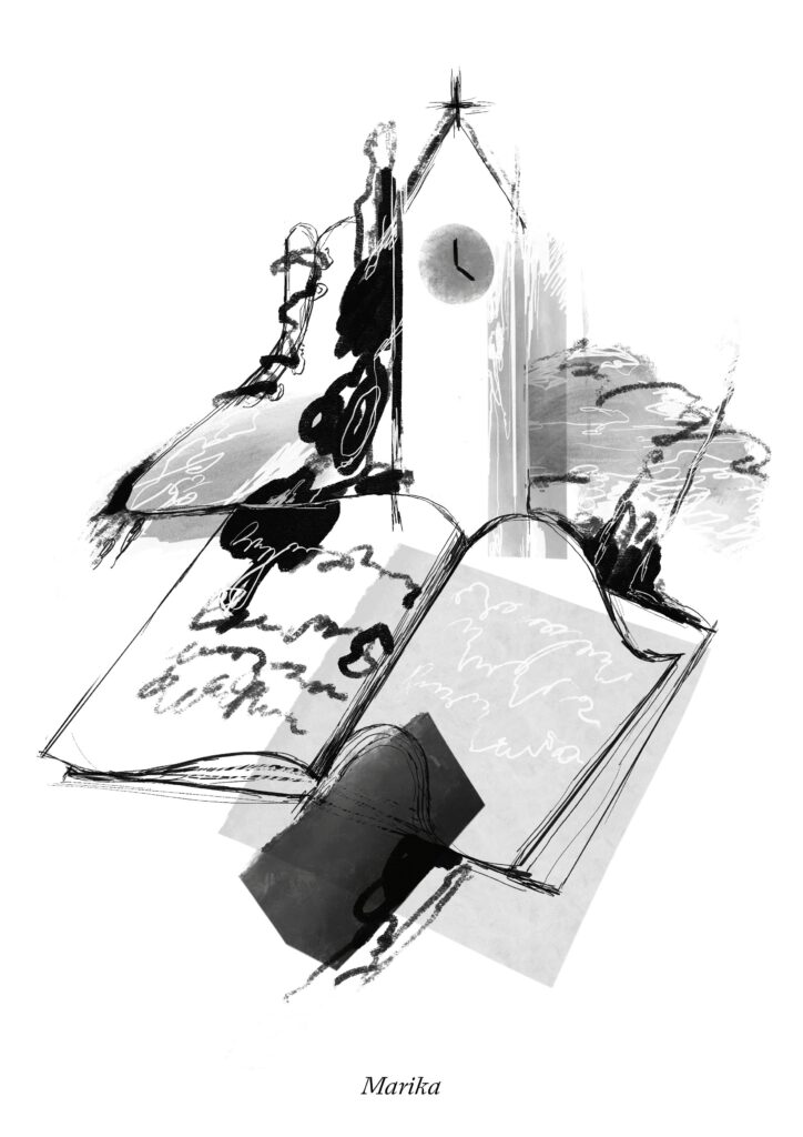 A kötetnek egyik legizgalmsabb, legsodróbb írása a Marika című színmű. A keretes szerkezetbe ágyazott retrospektívben is a háború és az egyéni érdek, a kisszerű, karrierista attitűd áll szemben a tiltott szerelem erejével. A vándormotívum itt mégis megújul, képes izgalmas színekben megjelenni, a beemelt versek líraisága is fokozza ezt az élményt. Írói ars poeticának is tekintheti az olvasó Andris Marikának szóló vallomását (melynek részletét választottuk ezen írás címéül) az alkotásról: „A kék mennybolttól a fák és füvek gyökeréig békesség áradt a tájon, csak messziről szűrődött hozzám egy kis darálómalom monoton pattogása… Én falun nőttem fel, gyerekkoromtól kezdve szerettem a fákat, a földek tavaszi zöld áradását…” Ennek a vallomásnak negatív tükre, mintegy luciferi parainesis Kővágónak az Andrishoz intézett szónoklata: „Öregem, csak egyszer élsz. Ez a sötétfejű emberiség nem érdemli meg, hogy az ember az egyetlen életét elpuskázza miatta.”