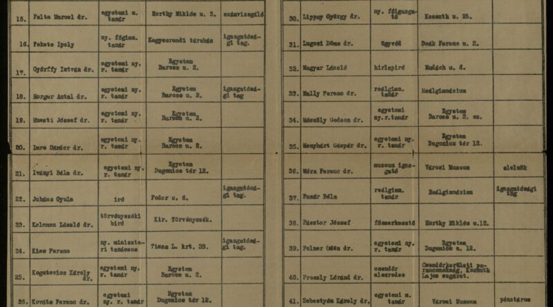 [4] Megjegyzendő, hogy a korabeli egyetemi tisztségeknél az ny. a nyilvános, az r. a rendes, az rk. a rendkívüli, c a címzetes és az m. a magántanári megszólítást jelentette.