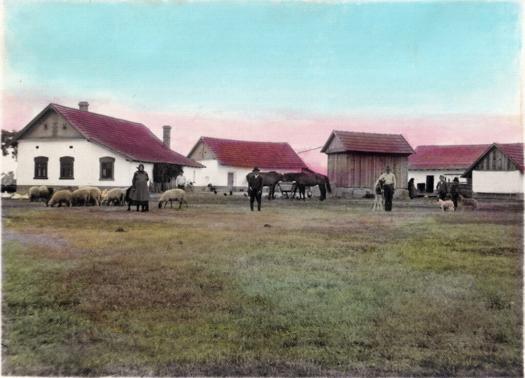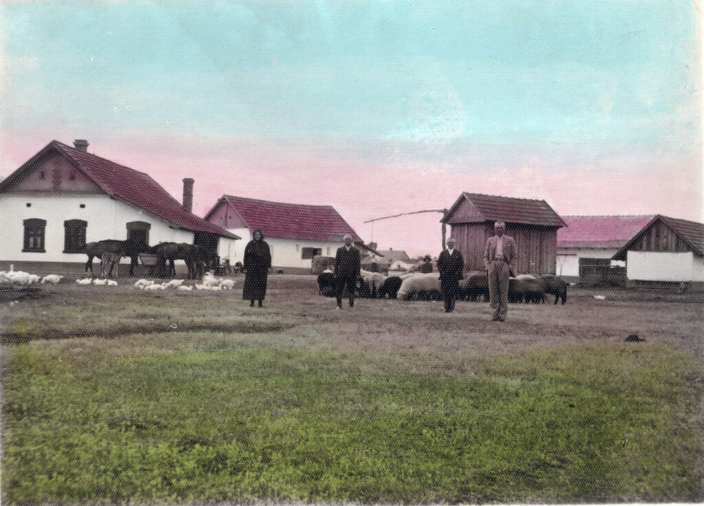 Füvesi István (1841–1917.12.15) építtette fia, Füvesi István (1878–1948) és családja számára: 1917-re készült el, ekkor költözött be a 2 gyermekes család, a gyerekek ettől kezdve innen jártak iskolába. A képeken ez a família látható, gazdasági épület több is volt, s nagy takarmánytárolók, de ezek a fotóstól balra és mögötte álltak, ezért nem láthatóak a képeken. Maga a fotó 1922 és 1927 között készülhetett. A fotón látható tanya Vásárhelykutas Puszta 764. számot viselte, a falutól déli irányban mintegy 2 km-re helyezkedett el; később, a téeszesítéskor a VII. kerület 58 számot kapta. (Füvesi István szíves közlése)