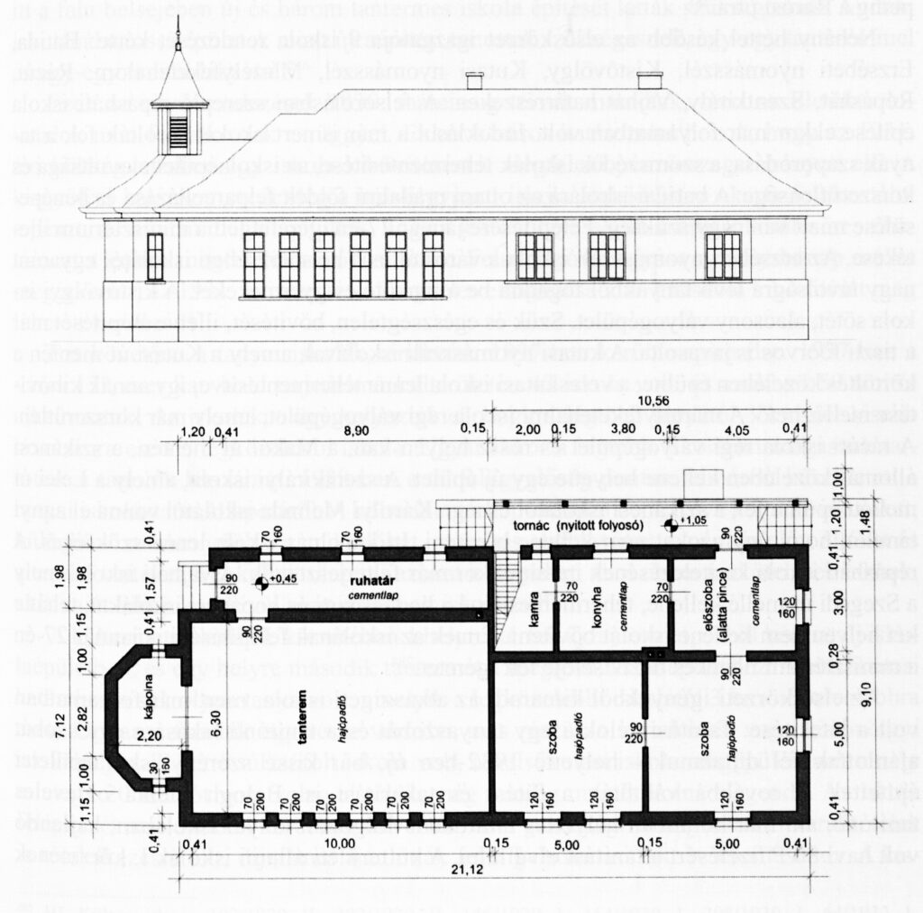 Az iskolák általában egy tágas, fűthető tanteremből, egy vagy két szobás, konyhás, kamrás tanítói lakásból álltak. Az épületek általában tíz öl hosszú vert, majd téglára épített vályog falú házak voltak, amelyeket zsindelytetővel fedtek. Később már téglaépületeket emeltek. Klebelsberg Kuno vallás- és közoktatási miniszter idejében már csak ilyenek épültek tágas ablakokkal. Ugyanakkor az iskolák épületének alaprajzán nem változtattak. Előfordult később, hogy az udvari WC-k helyett belső angolvécét alakítottak ki. A szobákat, a tantermet padolták, az egyéb helyiségeket műköves padlóval látták el. A házat cseréptetővel fedték. A tantermek berendezése általában egy asztalból, székből, padokból és szekrényből állt, ahol részben az iskolai könyvtár köteteit és bemutatásra váró ásvány köveket tároltak. A falon ingaóra függött és egy falitábla, továbbá Magyarország és Szeged térképe. Földgömb és számológép szinte elmaradhatatlan volt a taneszközök között, nem hiányozhatott a falról egy-egy szentkép sem. Az osztályt kályhával vagy kívülről tüzelt banyakemencékkel fűtötték.